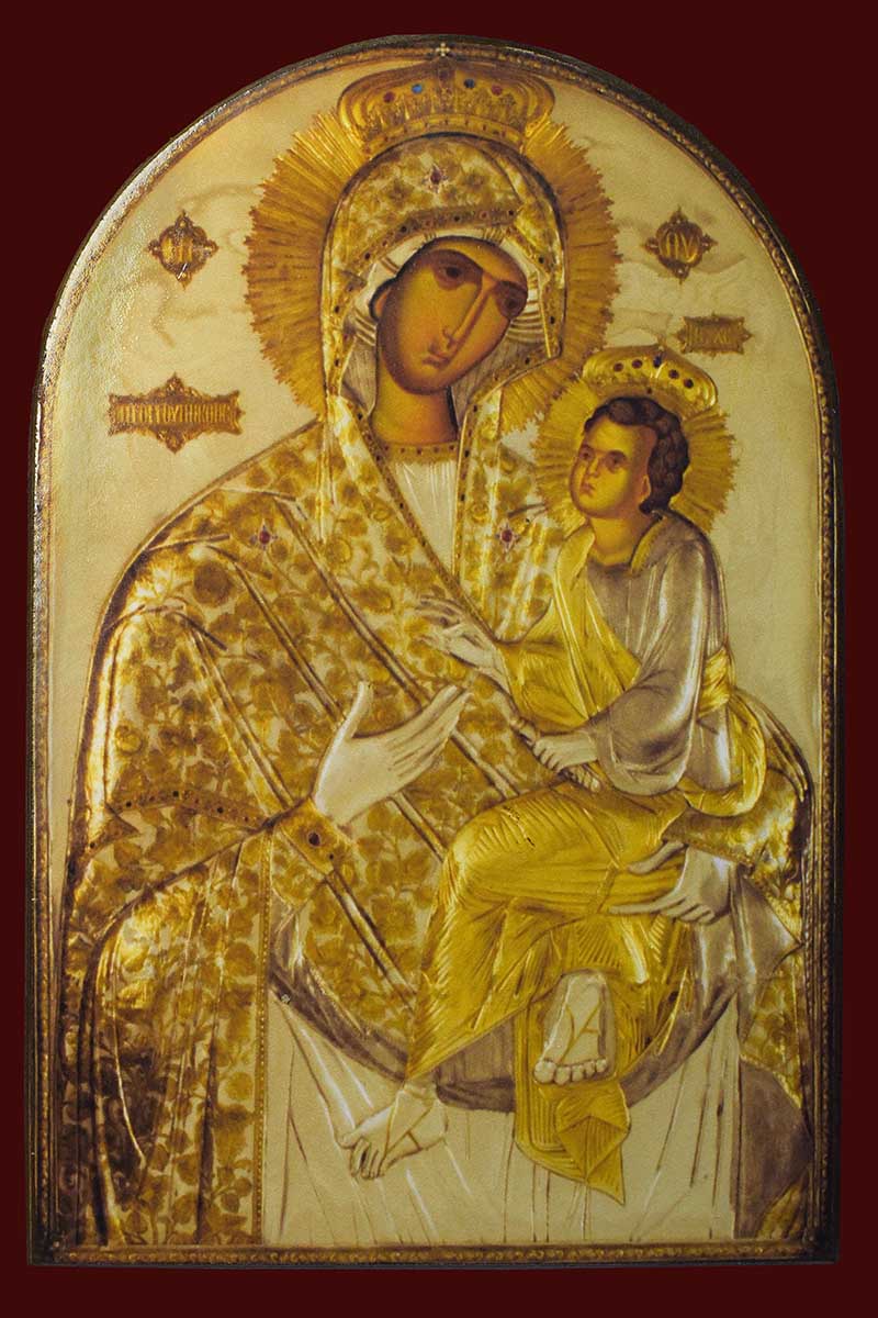 Вообще «Троеручица» – одна из самых прославленных и широко почитаемых в православном мире чудотворных икон Богоматери типа Одигитрии. Это святыня сербского монастыря Хиландар на Афоне. Отличается от других подобных икон левосторонним изображением Младенца Христа (сидит на правой руке Богоматери).